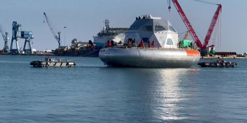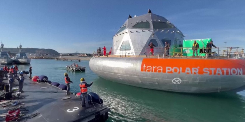 Tara polar station, a scientific base, was successfully launched in Cherbourg, northern France. A drifting laboratory launching from its shipyard this month ahead of its first ocean trials, is built to withstand Arctic conditions year-round, over and over again.