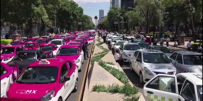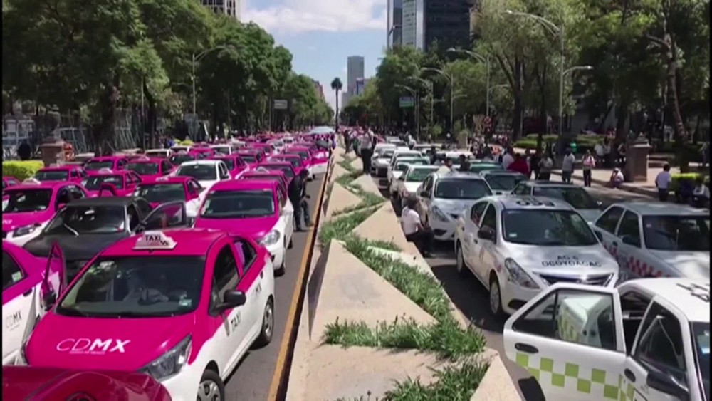 People were forced to walk to work across the Mexico City megalopolis as taxi drivers shut down major arteries, snarling traffic on Monday to protest ride sharing applications like Uber, Didi and Cabify. Taxis sat parked along the city's monument-lined road and tourists were stranded at the airport for part of the day as taxis blocked access to Terminal 1 of the city's international airport. Mexico City was among the first cities in the world to regulate Uber after the popular app burst onto the scene.