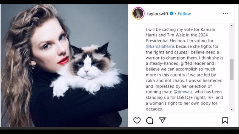 US pop superstar Taylor Swift endorsed Democratic Vice President Kamala Harris for president on Tuesday in a message posted on Instagram immediately after the first presidential debate between Harris and former president Donald Trump ended. She will be casting her vote for Kamala Harris and Tim Walz in the 2024 Presidential Election, she posted on her Instagram account.