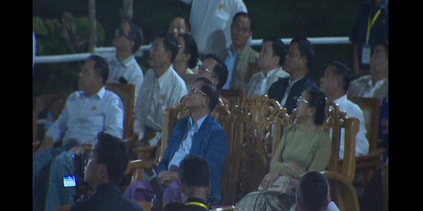 Later, the Prime Minister and attendees delighted in the spectacle of hot-air balloons named Swan Arshin (1) Nyameegyi, Thitsar Mandaing Seinnaban, Arman Thit Nyameegyi, Aung Myin Chin Moe Kaung Kin Seinnaban, and Hsin Hna Kaung Seinnaban.