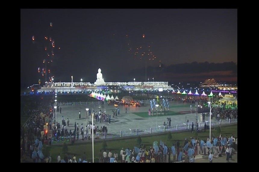 Tazaungdine lighting festival at Maravijaya Buddha Image the tallest of its kind globally and situated in the Buddha Park of Dakkhinathiri Township in Union Territory Nay Pyi Taw has been commenced as of the evening on 25th November with the throng of pilgrims from various regions of the country.