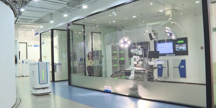 This is not a food delivery cart, but a robot delivering anaesthetics and other medication to the operating theatre. It can even find its way back to recharge itself. This Shanghai-based medical robotics company has developed over 50 types of robots, some of which were already sold to South Africa and Switzerland.