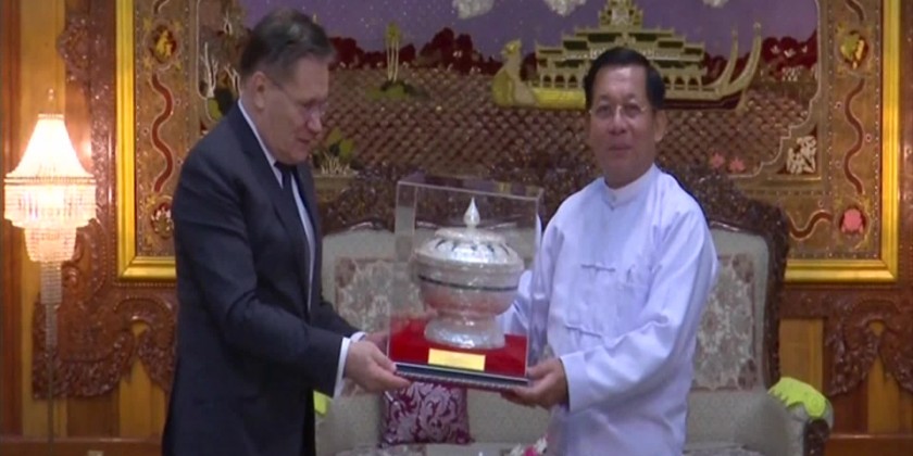 Chairman of the State Administration Council Prime Minister Senior General Min Aung Hlaing received a delegation led by Director General of State Atomic Energy Corporation Rosatom of the Russian Federation Mr. Alexey Evgenievich Likhachev at the Zeyathiri Beikman in Yangon on Monday.