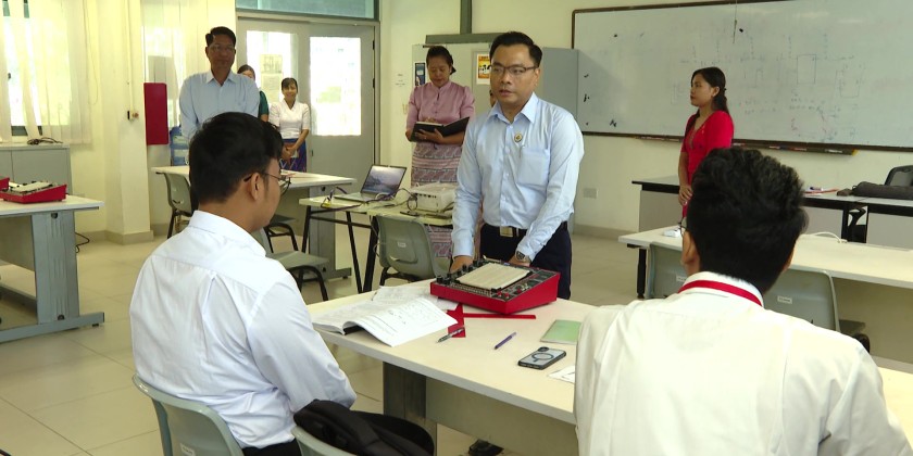 At the Governmnet Technical Institute (Insein), the Deputy Minister cordially greeted the students reading at the library and encouraged them to use their valuable time effectively to become qualified technicians who can boost nation’s MSME sector.