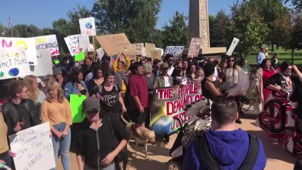 Teen climate change activist Greta Thunberg joined global protests on Monday from South Dakota where she led a march in downtown Rapid City. Sixteen-year-old Thunberg made a surprise announcement that she would participate in the event on Sunday as she visited the Pine Ridge Reservation to meet with Native American activists.