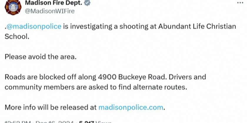 A shooting at a Christian school in Madison, Wisconsin, left five people dead on Monday. Children were among the dead. The shooting took place at Abundant Life Christian School, a private institution that teaches some 400 students from kindergarten through 12th grade, the Madison Police Department said.