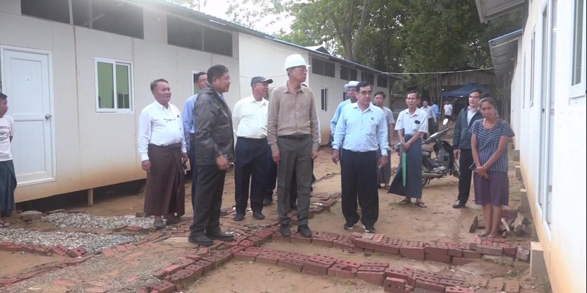 On 5th July, Member of the State Administration Council Deputy Prime Minister and Union Minister for Transport and Communications General Mya Tun Oo accompanied by concerned officials inspected the completion of container houses installation and relocation of the earthquake affected staff families under the Ministry.