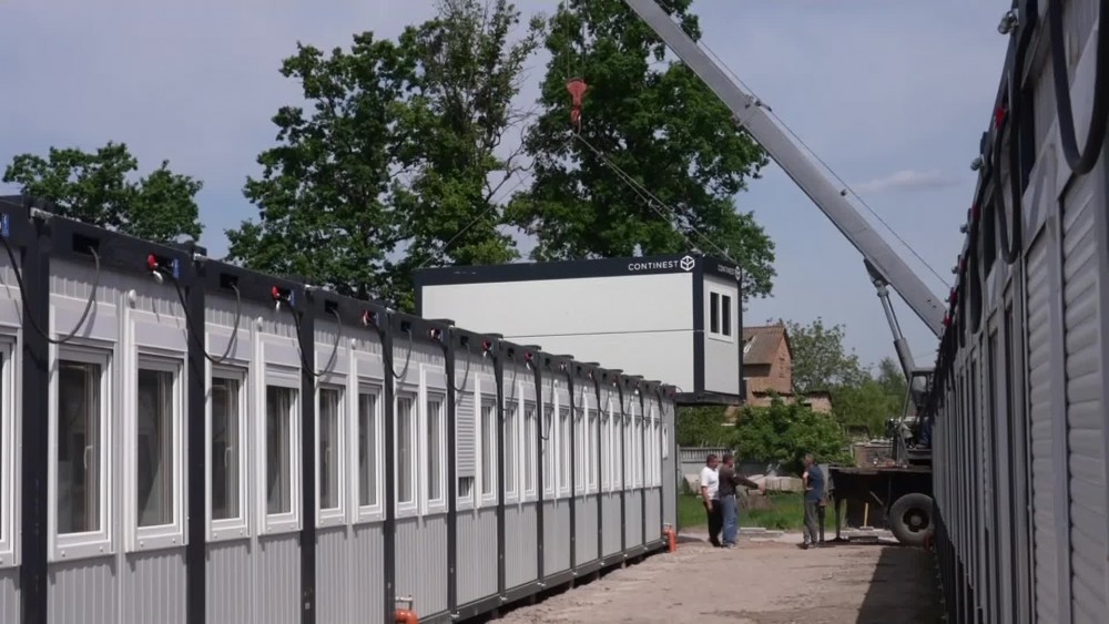 Workers continued to install temporary mobile homes on Wednesday at a site in Borodyanka in Ukraine. Officials said 88 mobile buildings had been installed on land at a local stadium to accommodate residents who lost their houses during the conflict. Borodyanka administration representative said the temporary buildings have the potential to accommodate 350 residents. He added however, that more than 700 families wished to move in. Authorities are planning to install two similar sites of temporary buildings in an effort to accommodate everyone