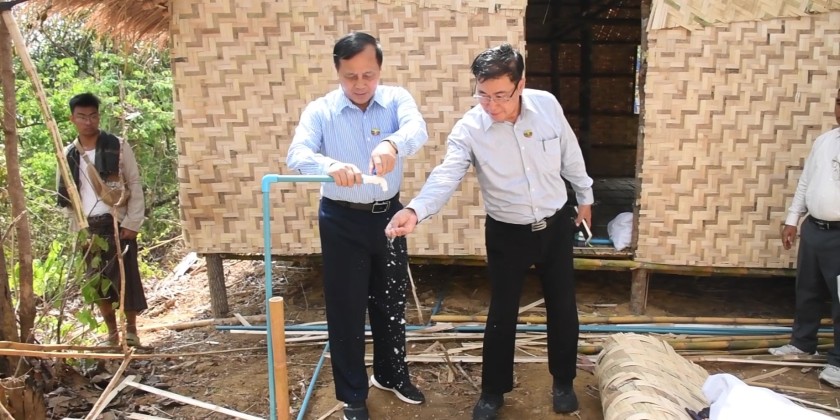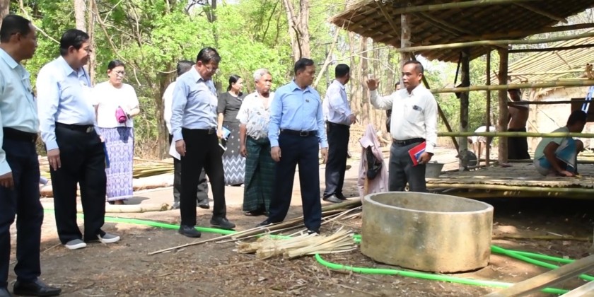 Union Minister for Ethnic Affairs Khun Thant Zaw Htoo, together with officials, on April 20th inspected the construction progress of temporary shelters for the staff families affected by the severe earthquake.