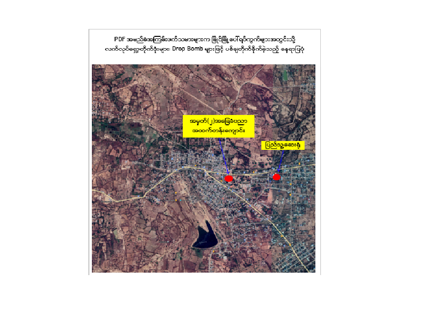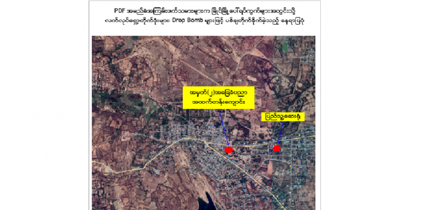 At around 10:15 a.m. on the day, the PDF terrorists dropped bombs on urban areas using drones and launched hand-made shock missiles from the southwest of the township and east of NgatPyawTwin village.