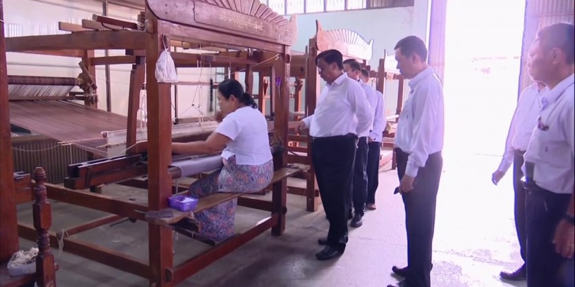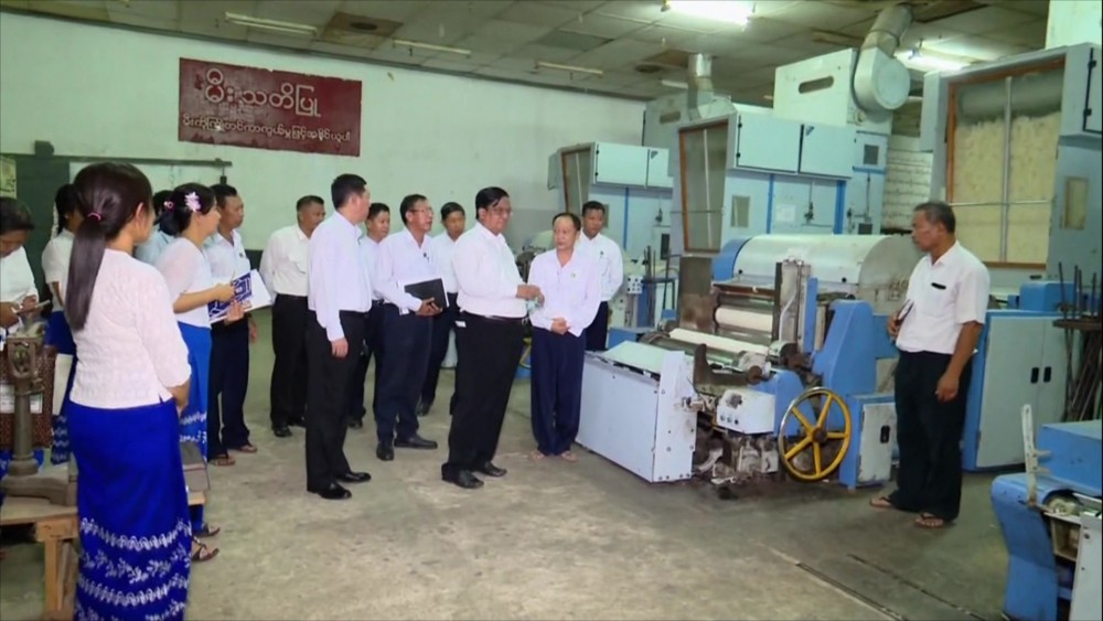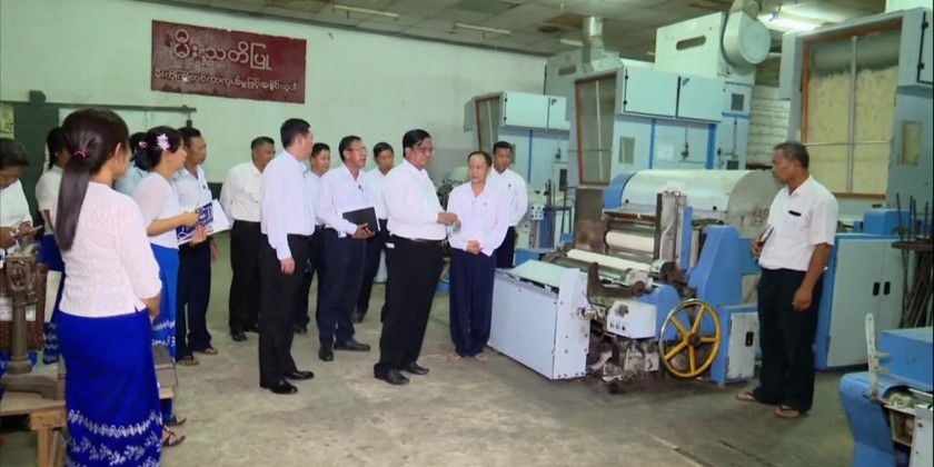Union Minister for Industry Dr. Charlie Than visited No. 1 Textile Factory (Shwedaung) in Bago Region and inspected processes of cotton weaving and dying as well as machines and warehouses.