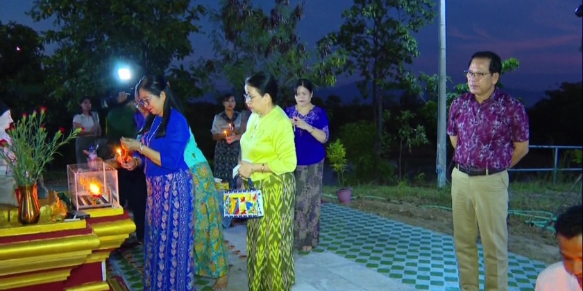 Union Minister U Maung Maung Ohn participated in the celebration, offering flowers, water and oil lamp at the Maha Aung Bodhi Gyo Shit Khwin Pagoda and taking part in 1,000 oil lamps offering.