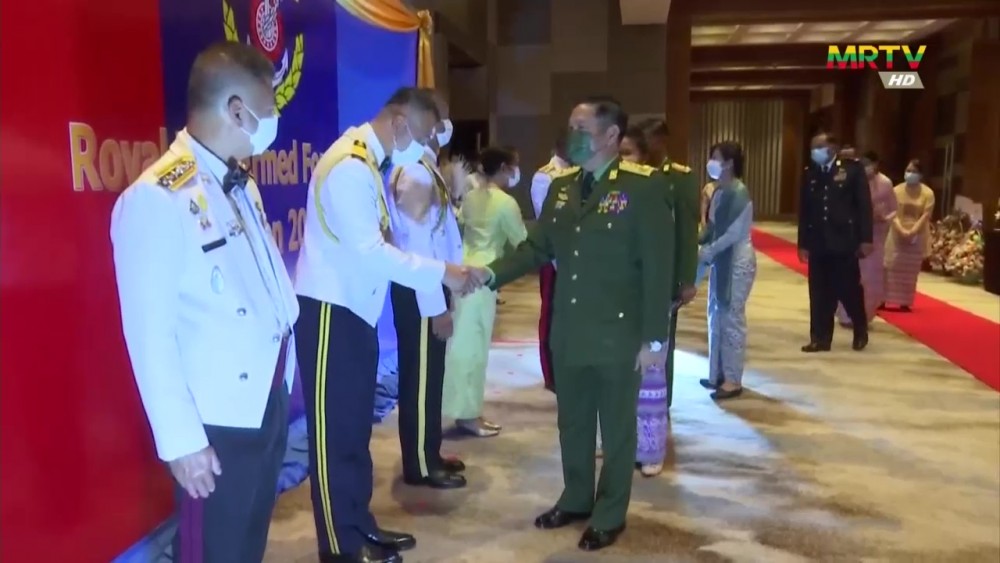 First, Deputy Ambassador of the Embassy of Thailand to Myanmar Mrs Kanokwan Pengsuwan, Thai Military Attaché Senior Colonel Saranyanis Sutthiwajchinadej and wife welcomed Lt-Gen Thet Pon and guests. Then, the attendees saluted after the two national anthems were played, and the Thai military attaché made a greeting speech. Afterwards, they played the video clip of Royal Thai Armed Forces Day.