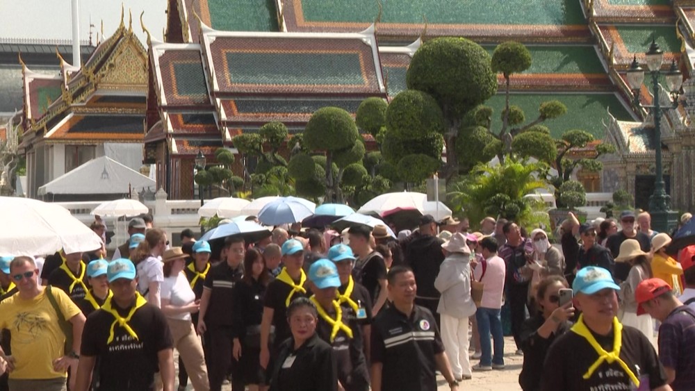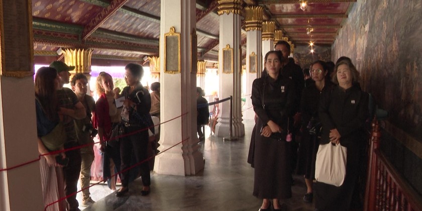 Thousands of Thai mourners, all dressed in black, queue up for hours to pay their respects to the late Queen Mother Sirikit who is lying in state inside the throne hall of Bangkok's Grand Palace.