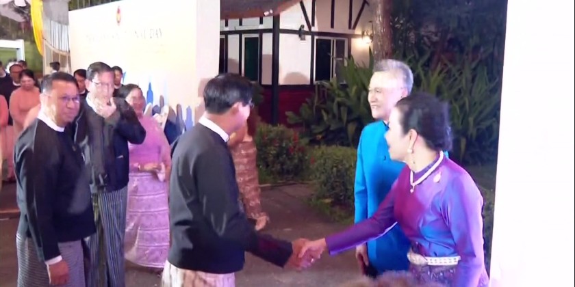 After a group photo session, the Union Minister, Thai Ambassador to Myanmar enjoyed the performances of Thai traditional dance troupe.