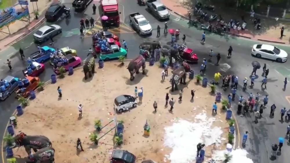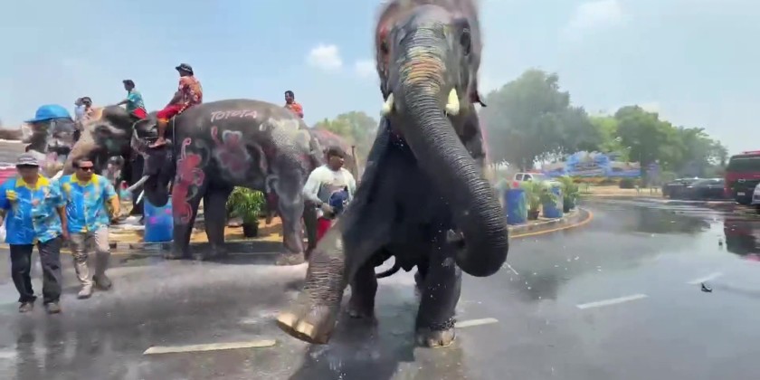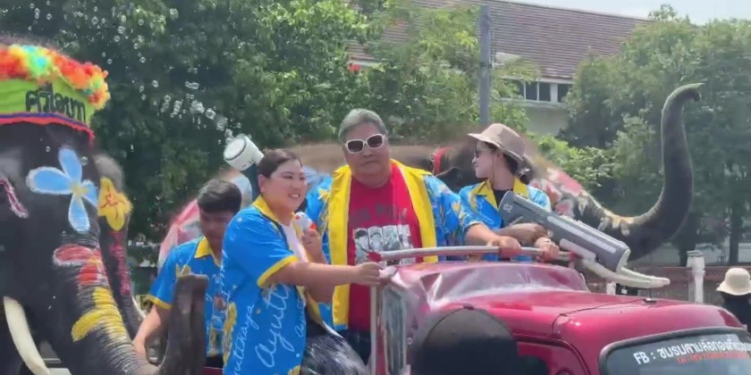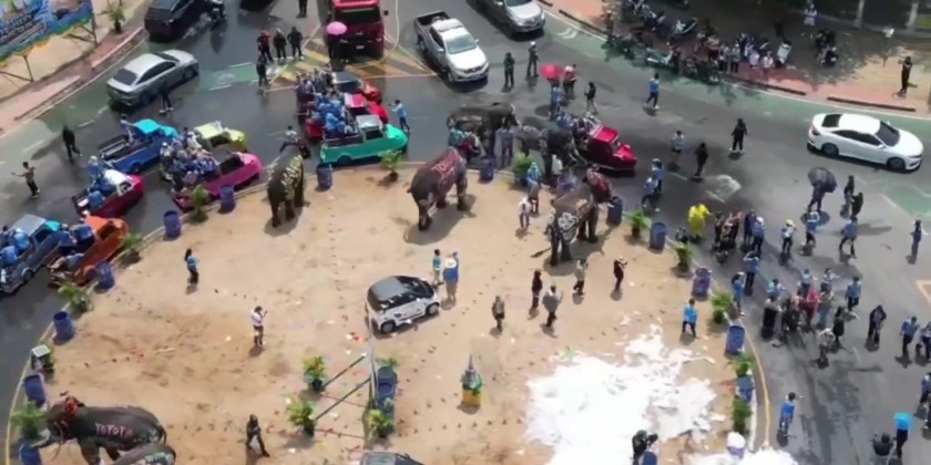 Although Songkran is usually held from April 13th to 15th in Thailand, ten magnificent elephants from the Ayutthaya Elephant Palace & Royal Kraal, beautifully painted in vibrant floral patterns, splashed water with people and celebrated to welcome the Thai Songkran festival. Moreover, residents and tourists participated to bring their water barrels on trucks for a city-wide splash.