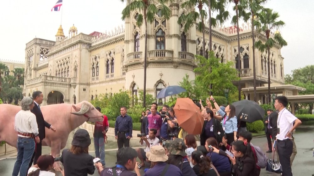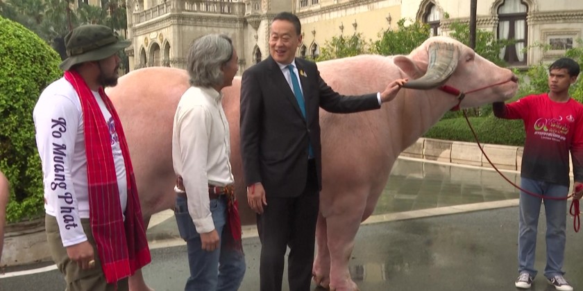 Thai Prime Minister SretthaThavisin took the bull by the horns Wednesday as he welcomed an unusual visitor to his offices. The four-year-old albino buffalo from western Phetchaburi province standing six feet tall and weighs of 1.4 tonnes that recently sold for $500,000.