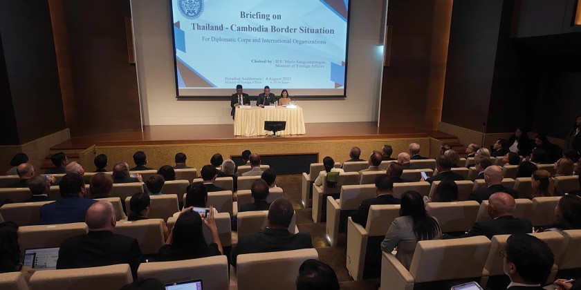 Thailand’s Foreign Ministry on Monday briefed foreign diplomats and international organizations on the Thai-Cambodian border situation. Foreign Minister Maris Sangiampongsa called on Cambodia to engage in sincere, peaceful negotiations and to stop “distorted information attacks,” stressing that Thailand did not initiate the conflict.