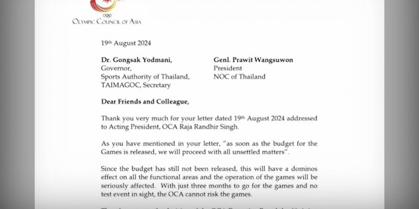 The Olympic Council of Asia (OCA) cancelled the 6th Asian Indoor and Martial Arts Games in Thailand, scheduled to take place in November in Bangkok and Chon Buri, due to delays in budget approval. Vice President of the National Olympic Committee of Thailand expressed concerns about the consequences if Thailand could not host the event.
