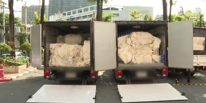 They were denied entry, so the sender contacted a Thai woman in Bangkok to arrange for the bales to be stored before shipping to another country. The woman was arrested last week at the Queen Sirikit Convention Centre in Khlong Toei district. The drug, impregnated into the cotton, could not be seen with the naked eye, the police said.
