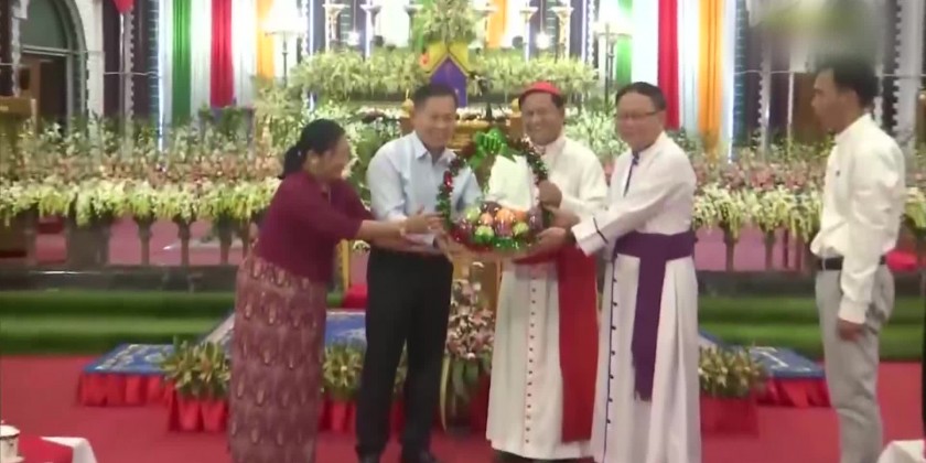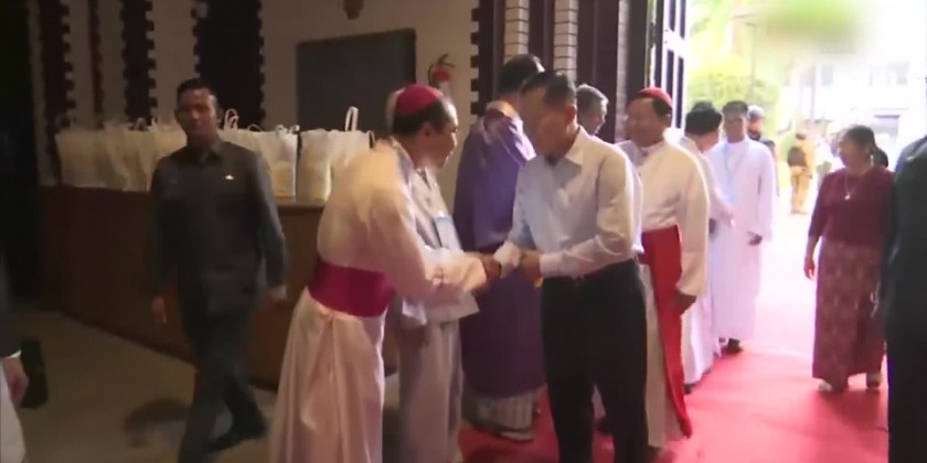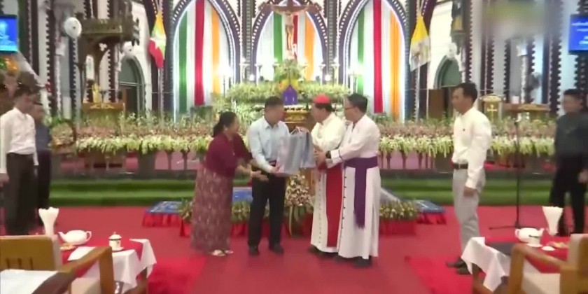 Cardinal Charles Bo, Archbishop Steven Than Myint Oo presented a Christmas gift to the SAC Vice Chairman Deputy Prime Minister and wife who returned fruit basket and commodities manufactured by the Tatmadaw factories as the Christmas gift.