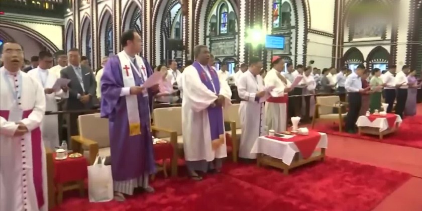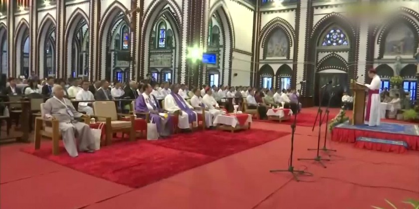 Next, the ceremony was held at the St. Mary’s Cathedral and Archbishop U Myat Hsan said opening prayer and auxiliary bishop Noel Saw Naw Aye extended words of greeting and a religious song sung in unison.