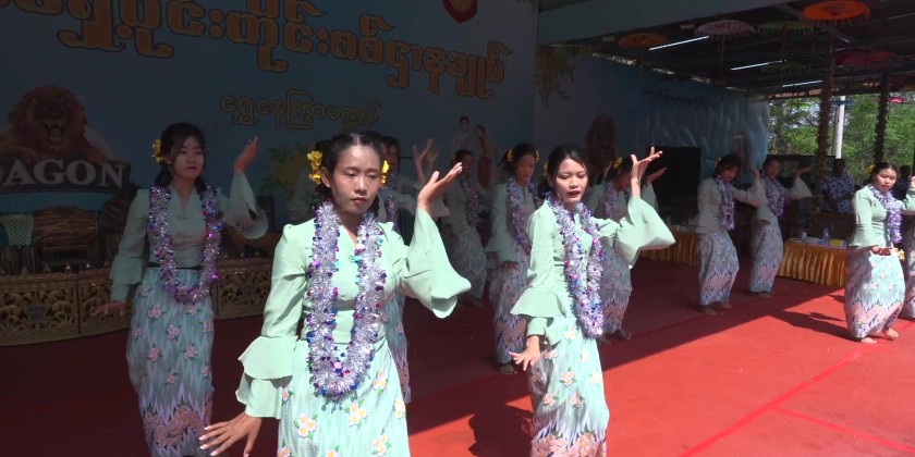They watched and encouraged performances by the East-Command Yein dance troupes, the Yein dance troupe of senior military officers' wives, the Yein dance troupes of the General Administration Department, famous vocalists, and Dancer dance troupes.