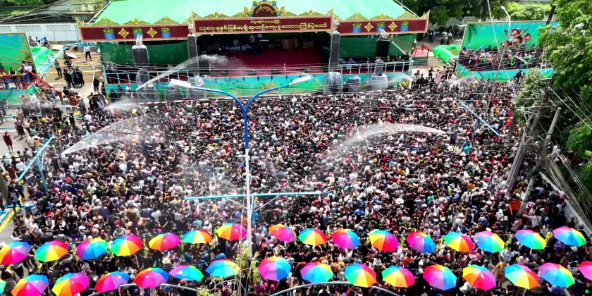 Organized by the Bago Region Government, the Myanmar Traditional Maha Thingyan Festival is being vibrantly celebrated at central pavilions in 28 townships. Additionally, in wards and villages, young people and children have gathered to happily and peacefully play Thingyan Atar water using small pavilions.