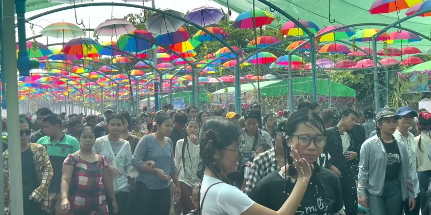At the central pavilion in Bago, organized by the Bago Region Government, the 2026 Myanmar Traditional Maha Thingyan Atat Day has been celebrated since the morning of April 16. The festival is exceptionally crowded with Thingyan-loving people, as families and groups of friends gather to joyfully and peacefully celebrate the water festival.