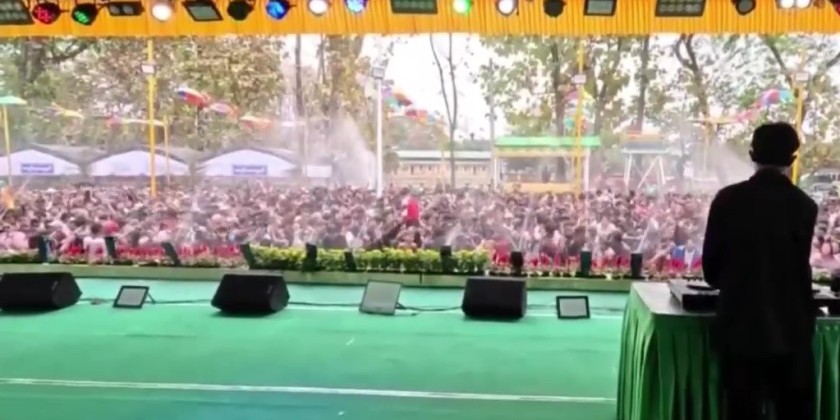 The festival is being held in accordance with Myanmar customs, style, and traditional cultural heritage, with the enthusiastic participation of military officers, ranks, family members, Yein traditional dance troupes, modern music bands, and Thingyan-loving members of the public.