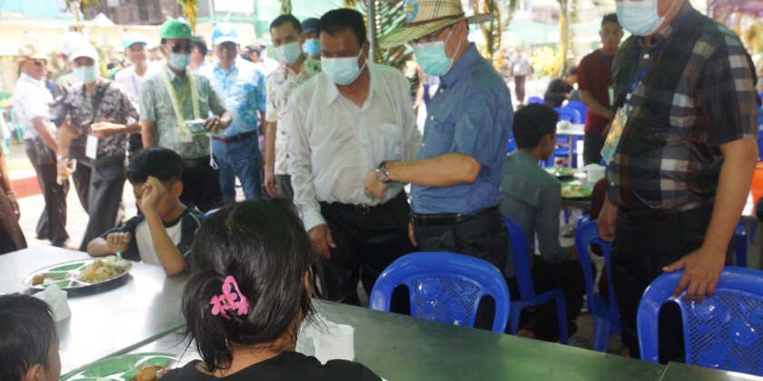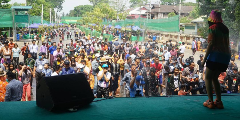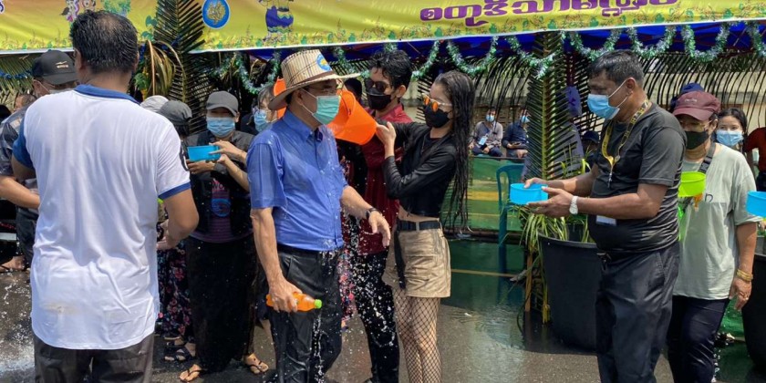 The Region Chief Minister and party participated in the Thingyan activities together with the people at the water pandals and they also cordially greeted the locals who had charity food arranged by the regional government.
