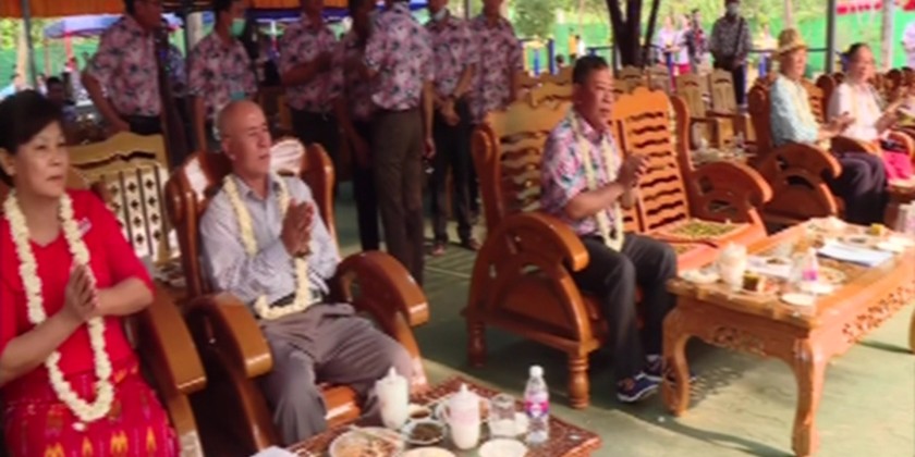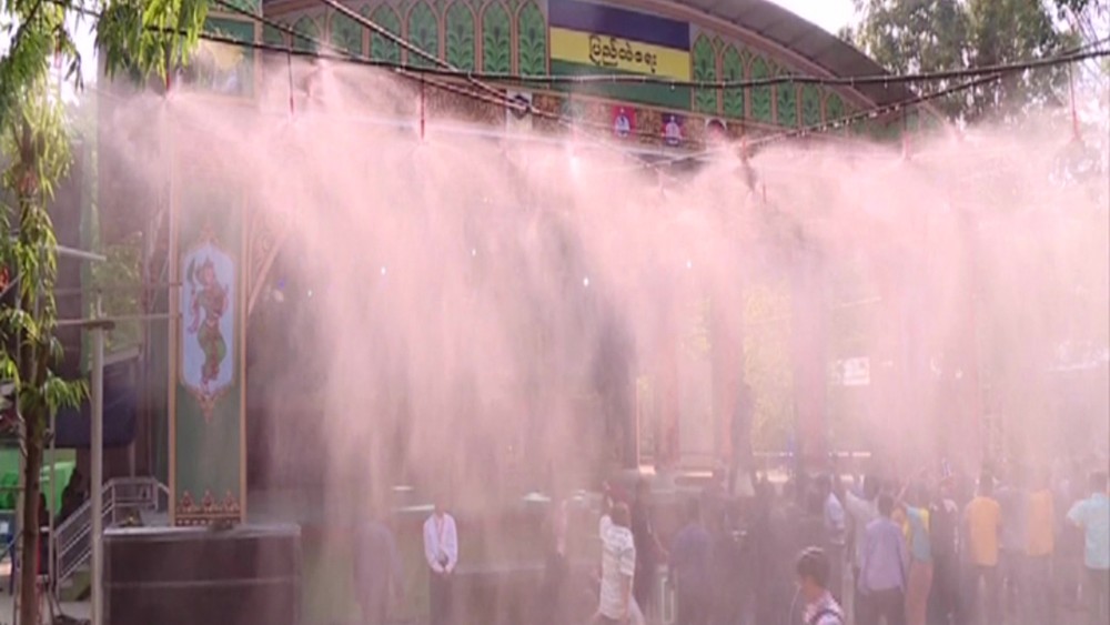 Members of the State Administration Council Jean Phang Naw Taung, Saw Danial and Dr Banyar Aung Moe, Union Minister at the Office of the Union Government (2) U Chit Naing, Union Minister for Investment and Foreign Economic Relations U Aung Naing Oo, Union Minister for International Cooperation U Ko Ko Hlaing, Union Minister for Religious Affairs and Culture U Ko Ko, invited guests and wives visited water pandal of the Ministry of Home Affairs on 14th April.