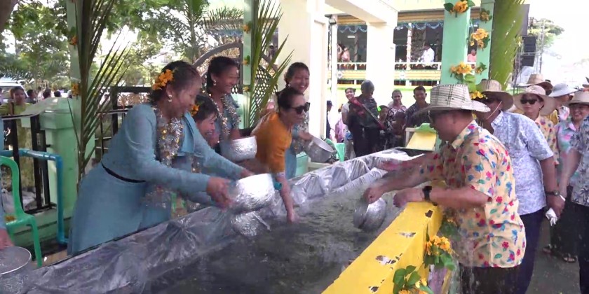 On the morning of April 15th, the Thingyan Akat Day or the Middle Day of Myanmar Traditional Maha Thingyan Festival, Rakhine State Chief Minister U Naing Oo, his wife, State Hluttaw Speaker Dr. San Shwe and members of the state government and their wives visited monasteries in Sittwe to offer alms food and other offertories.