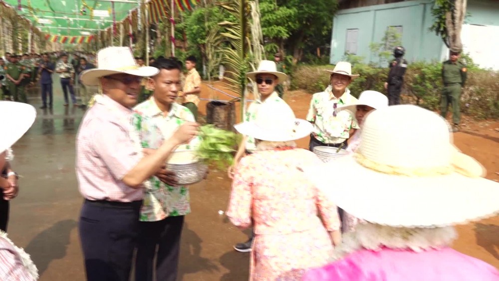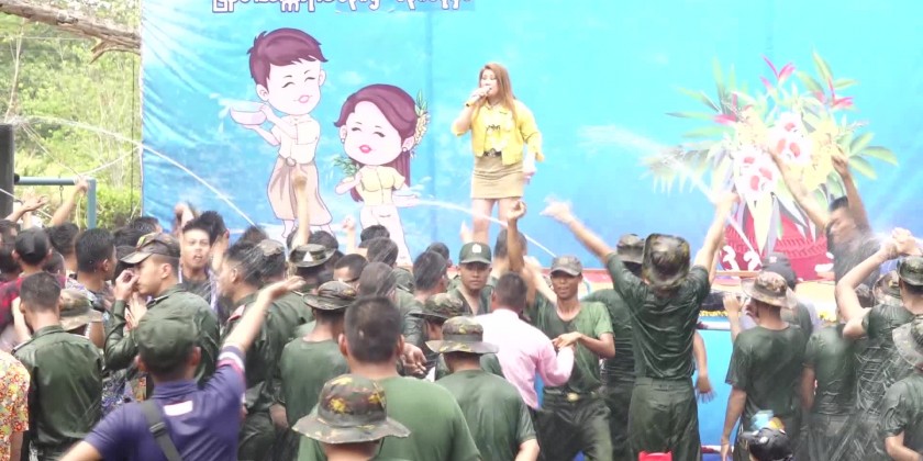 They first sprinkled water to the trainees of People’s Military Service, followed by entertainment programs by Yein dance troupes and renowned vocalists.