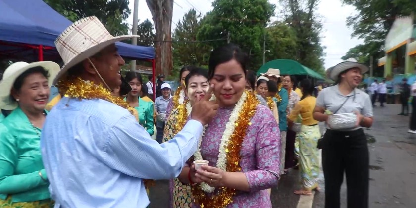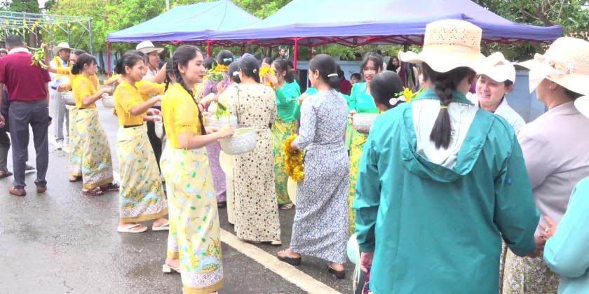 On 15th April, the A-Kyat day or the eclipse Day of Thingyan, the Shan State government, led by the Chief Minister U Aung Aung and his wife, along with other state ministers and their spouses, the state government's secretary and wife, as well as officials from state, district, and township levels, sprinkled water for the Thingyan festival in accordance with Myanmar traditional customs using the sprigs of Eugenia. They also observed the Satudithar pavilions where the charity foods are offered, and they watched a applying thanaka paste in efforts to have it included as an intangible cultural world heritage list of humanity. Participants in the traditional Myanmar Thingyan water festival were sprinkled with water using the sprigs of Eugenia, it’s reported.