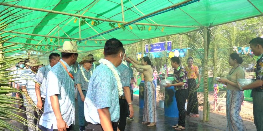 Magwe Region Chief Minister U Tint Lwin and officials attended the opening ceremony of Thingyan Water Pandal at Magwe Air Base on 14th April.