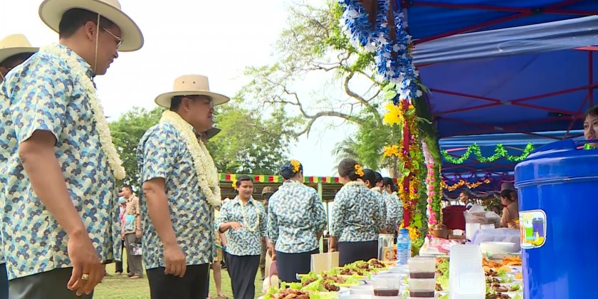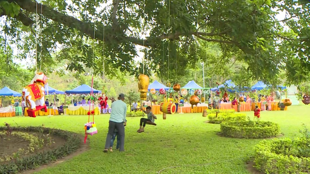 At the pandal of Northern Command in Myitkyina, the Cheif Minister, together with the Commander of Norther Command and officials, viewed the treating of charity feast by the families of loal batallion.