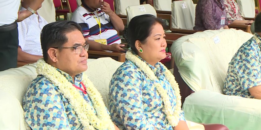 Kachin State Chief Minister U Khet Htein Nan and party celebrate the Thingyan Water Festival on 14th April.