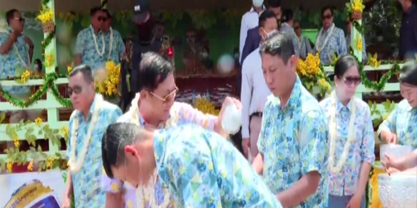 They also sprinkled Thingyan water to the military officers, Tatmadawmen and families. The Senior General and party later proceeded to the water pandal of the family of Defence Services Academy, and enjoyed the performances of dance troupes, cadets, and vocalists.