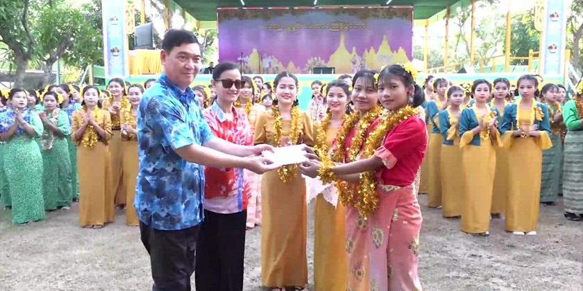 In the evening, they visited the Thingyan Pandals, enjoying the performance of Yein dance troupes. Cash rewards were also presented to the participants. They also took part in the Rakhine tradition water pandal and enjoyed the throwing of water, enjoying the entertainment programs.
