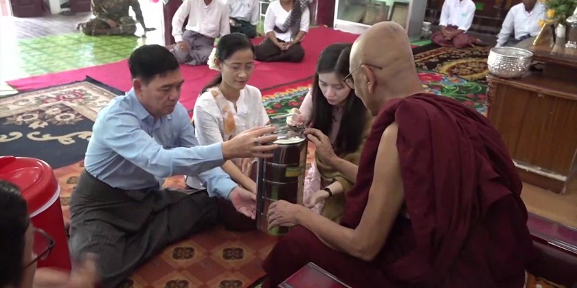 Chief Minister U Htein Lin and wife, together with concerned officials, took part in the celebration. In the morning, they visited Nandar Rama PariyattiSarthintaik in Sittwe and donated offertories to the Presiding Sayadaw.