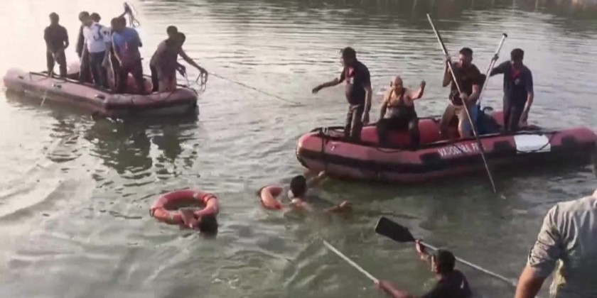 The incident happened in Gujarat state as students were travelling to a picnic organized by their school.Dozens of people joined a frantic search for survivors around the lake near the city of Vadodara where the boat capsized.Officials at the hospital said that the victims included children aged as young as 10 along with two of their teachers. The cause of the accident was not immediately clear.