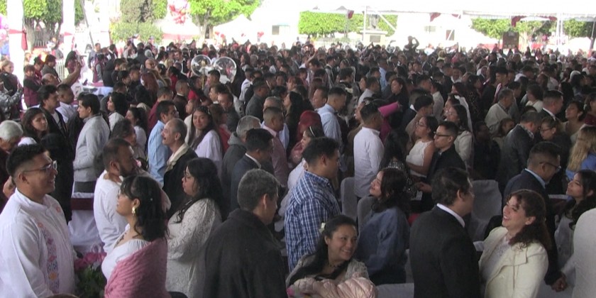 Thousands of couples get married on Wednesday Valentine's Day in a free mass ceremony near Mexico City.