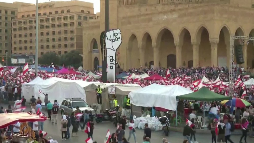 Thousands of anti-government demonstrators rallied in Lebanon's capital on Sunday as nationwide protests against the country's rulers persevere despite the resignation of Prime Minister Saad al-Hariri. Protesters packed into Beirut's Martyr's Square and rallied into the evening, waving flags and dancing to music in front of a central stage.