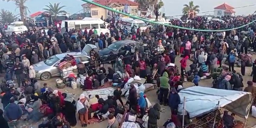 The displaced from the north of the Gaza Strip to the south during the aggression continue to gather at the nearest point to Gaza City and the north of the Gaza Strip, waiting to be allowed to cross and return to what remains of their places of residence, while the Israeli occupation army continues to prevent their passage.