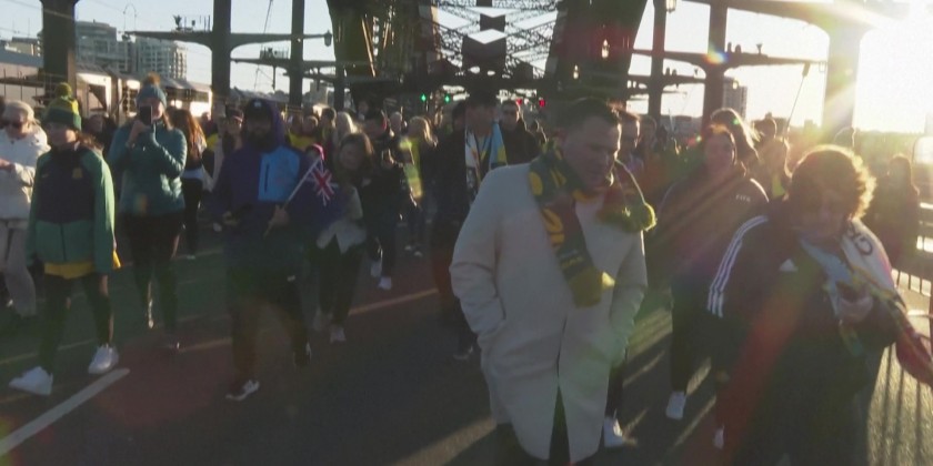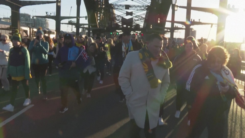 Football fans marched across the Sydney Harbour Bridge waving flags and cheering ahead of the FIFA Women's World Cup which kicks off on July 20. Motorists are advised to allow some extra travel time until traffic eases and return to normal.