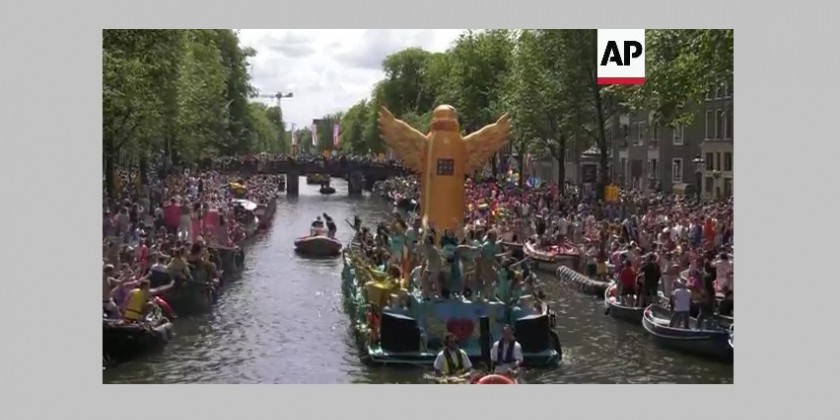 Hundreds of thousands of spectators lined Amsterdam's historic canals Saturday to celebrate Canal Parade.