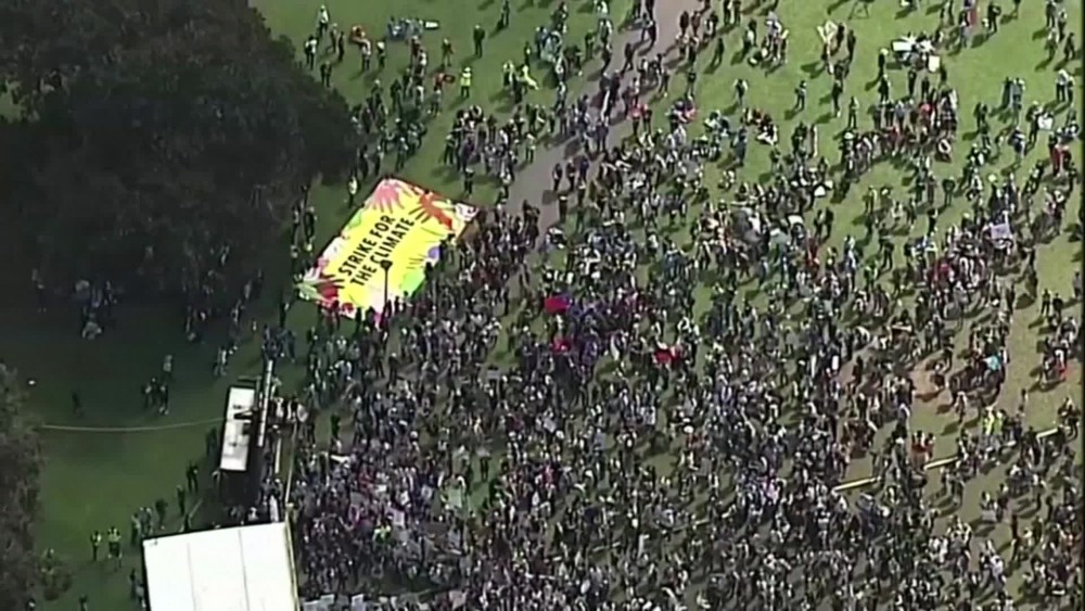 Thousands of school students walked out of their classrooms onto Sydney streets for climate change march on Friday. Protesters marched into the Domain, in Sydney's central business district, carrying handmade signs and chanting for climate policy change. They are also demanding world leaders gathering for a UN Climate Action Summit to adopt urgent measures to stop an environmental catastrophe. Similar protests, inspired by the 16-year-old Swedish activist Greta Thunberg, are planned in some 150 countries on Friday. The aim is for students and others from around the world to speak in one voice about the impending effects of climate change on the planet. The strike will end in New York when Thunberg will lead a march at the home of the United Nations headquarters.