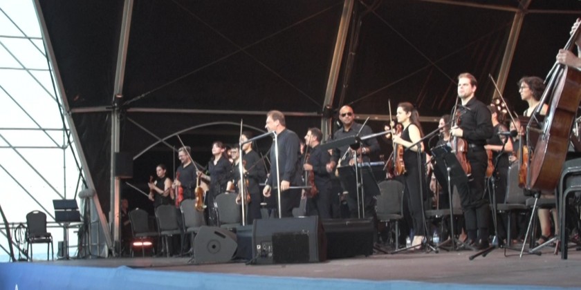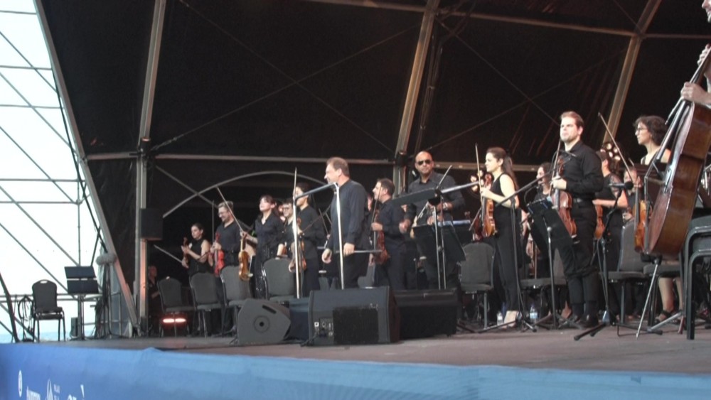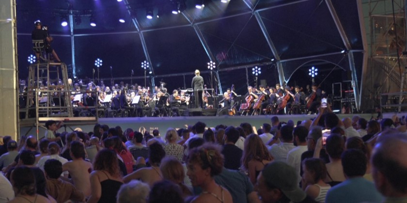 Thousands of people gathered on the Sant Sebastia beach in Barcelona for a free classical music concert performed by the Barcelona Symphony Orchestra (OBC). Led by conductor Ludovic Morlot, the performance featured various pieces of classical anthems.