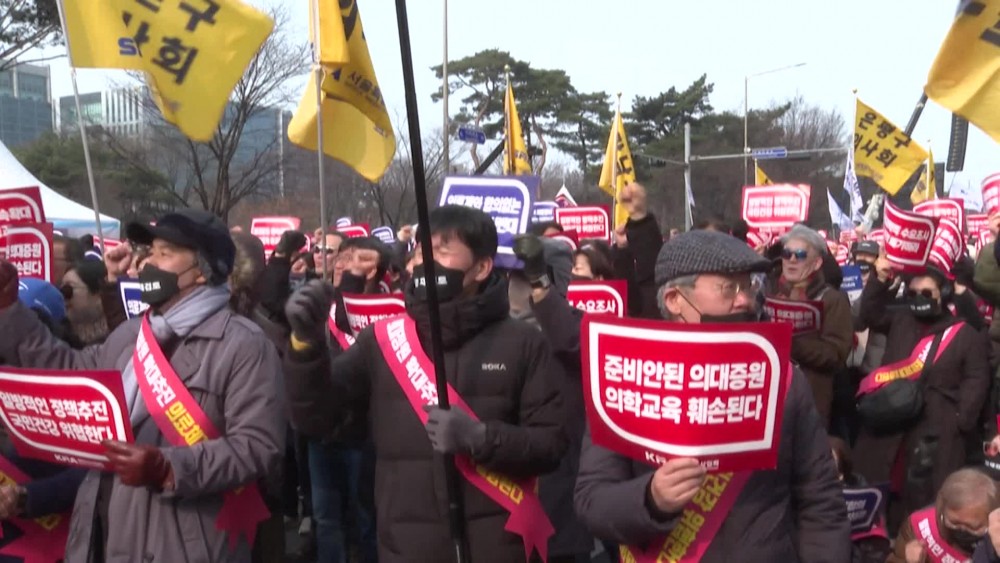 Thousands of South Korean doctors protested Sunday in Seoul in an escalating standoff with the government over medical training reforms, which has seen junior doctors quit en masse, plunging hospitals into chaos.